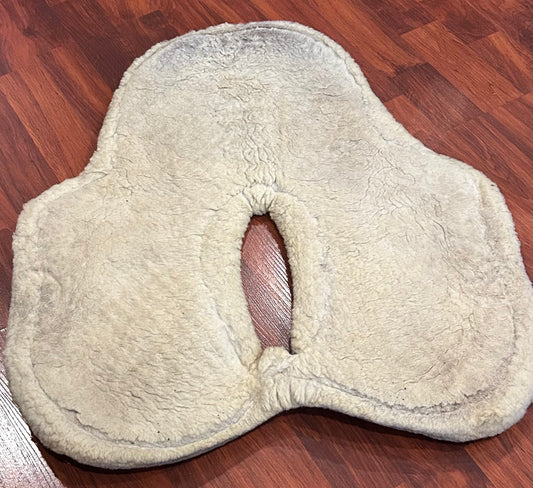 Fleeceworks sheepskin half pad. Saddle area measures 18” along spine. Minor dirt from use.