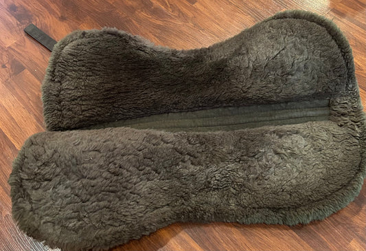Fleeceworks sheepskin half pad. Saddle area measures 18” along spine. Minor dirt from use.