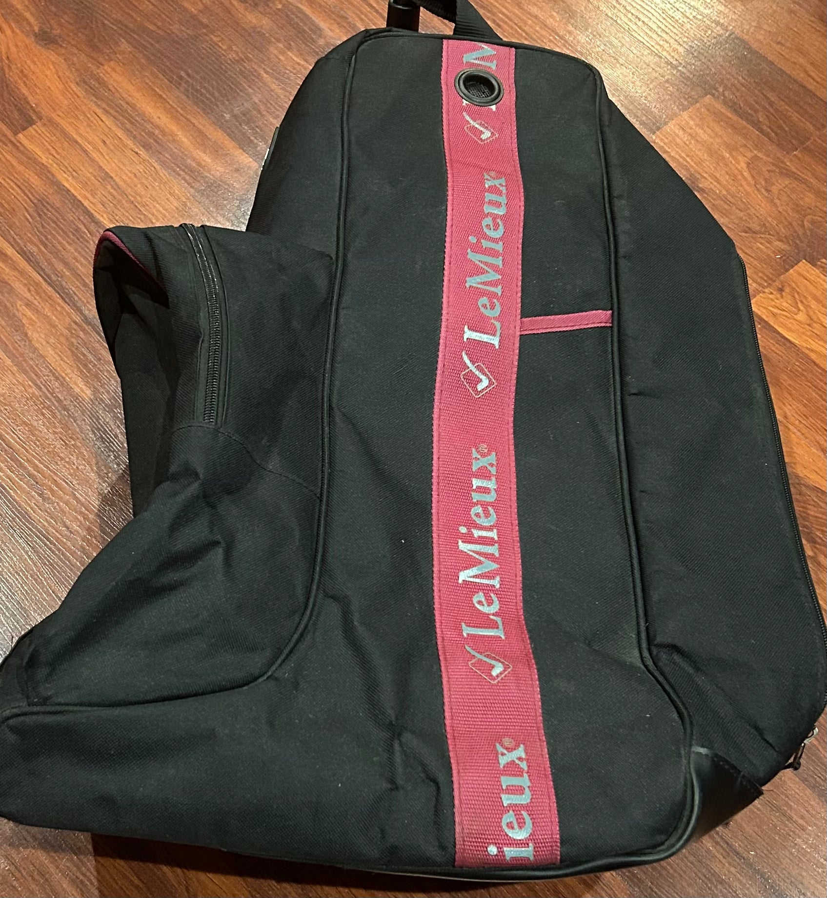 LeMieux boot and helmet bag black with pink. 23” tall