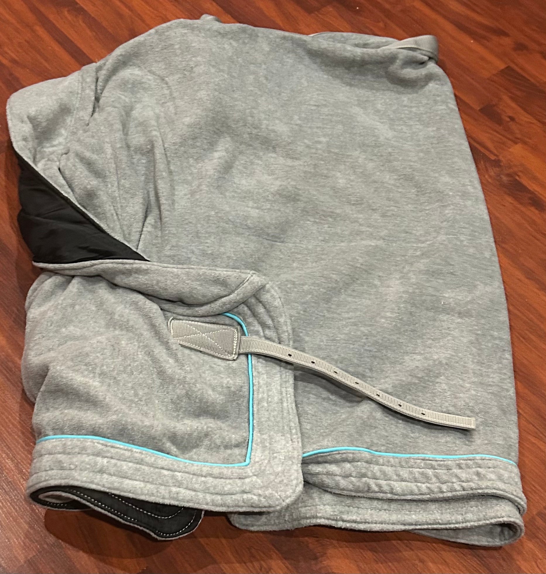 Shedrow large grey with teal piping fleece cooler. Designed without straps