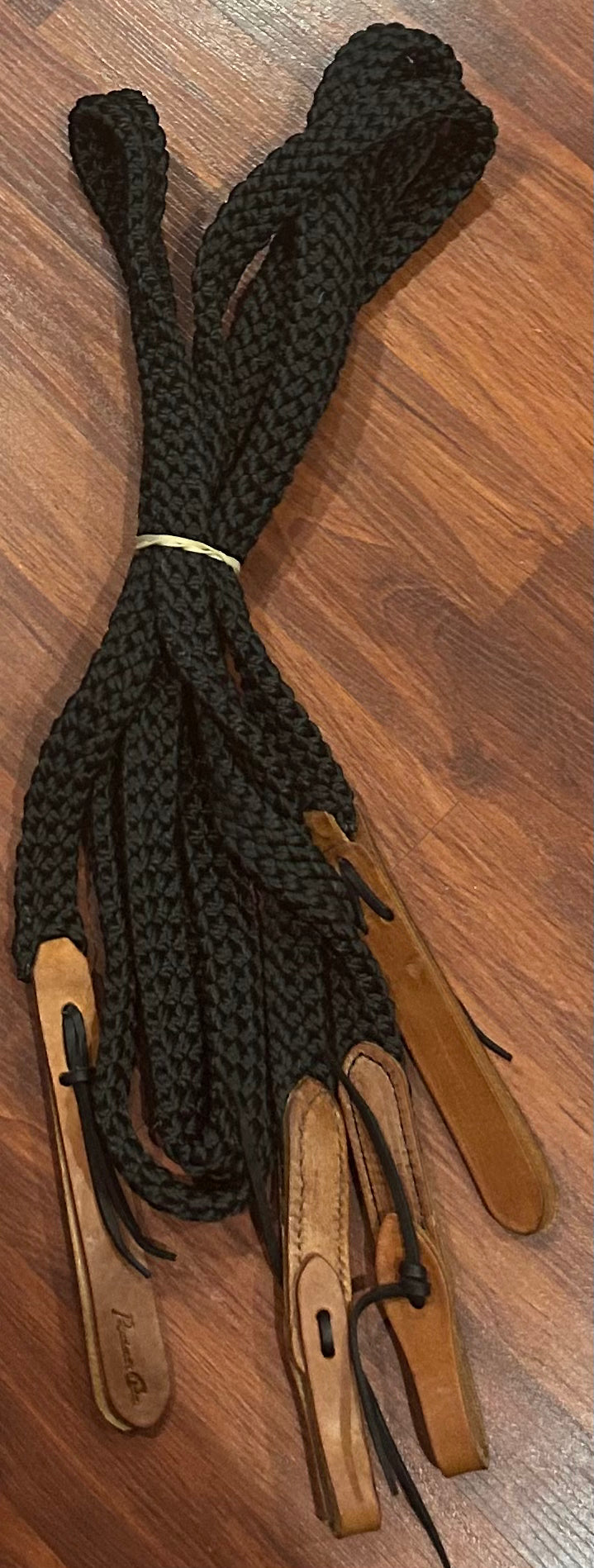 Professional’s choice quiet control split reins black. Like new. 9’ with water loops and tail end poppers.